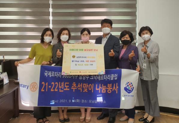 이에 김유중 오남읍장은 “코로나19 장기화로 어려운 상황에서도 이웃을 위한 나눔을 실천해 주신 남양주크낙새 로타리클럽 회원 분들께 감사드리며, 소외되는 이웃이 없도록 회원 분들의 따뜻한 마음을 잘 전달하겠다.”라고 전했다.