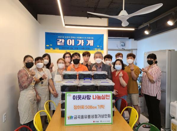 금곡홍유릉상점가 상인회는 추석을 맞이해 홀로 반찬을 만들기 어려운 노인, 장애인 가구를 위해 회원들이 직접 정성스럽게 담근 장아찌 50박스를 후원했으며, 장아찌는 금곡동 지역사회보장협의체와 남부희망케어를 통해 저소득 취약계층 가구에 비대면으로 전달됐다.