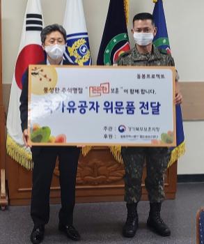 [한국뉴스타임=명기자] 경기북부보훈지청은 추석명절을 맞아 9월 15일 육군 동원전력사령부 제55동원지원단(단장 박진수)과 남양주 보훈가족을 위한 후원물품 전달식(온누리상품권 140만원 상당)을 가졌다.