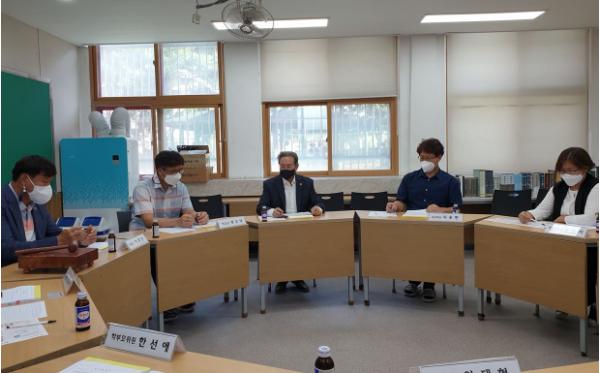 [한국뉴스타임=명기자] 경기도의회 건설교통위원회 오명근 도의원(더불어민주당, 평택4)은 지난 15일 청담중학교(평택시 팽성읍 소재)에서 류승대 교장, 이종안 운영위원장 및 운영위원들과 함께 학교 체육관 신축과 관련하여 논의했다.