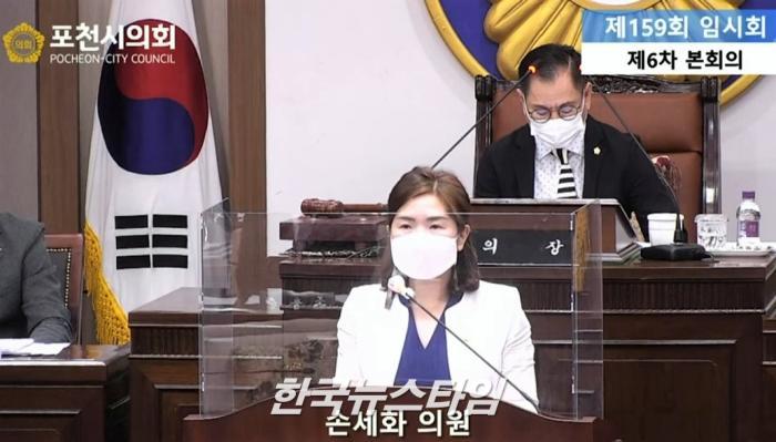 ( 5분 자유발언하는 손세화 시의원 / 출처 : 포천시의회 유튜브 방송 캡처 )