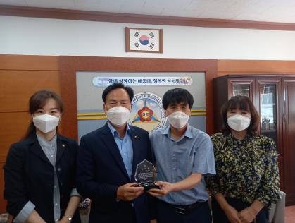 이번 감사패 전달은 박 의원이 2년간 체육관 및 특별교실 증축 공사를 성공리에 끝낼 수 있도록 본교의 과대·과밀 해소에 지대한 공헌을 하였기에 감사의 뜻을 전하기 위해 마련된 것으로, 전달식에는 정순태 광주매곡초 교장을 비롯한 학교운영위원장 및 교육공동체 일원 등이 자리를 함께하여 감사한 마음을 담아 축하했다.