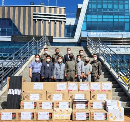 [한국뉴스타임=명기자] 제15항공단은 지난 16일 추석을 맞아 가산면에 거주하는 저소득층에게 전달해 달라며 커피, 라면 등을 가산면행정복지센터에 전달했다.