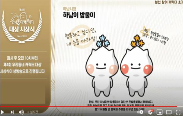 시 관계자는 “우리동네 캐릭터 대상에 세 번째로 출전한 하남이와 방울이가 올해 아쉽게도 수상의 기회를 놓쳤지만, 앞으로도 하남이 방울이를 알리기 위한 노력을 멈추지 않겠다”고 말했다.