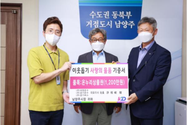 [한국뉴스타임=명기자] KD운송그룹은 17일 다가오는 추석 명절을 맞아 남양주시 관내 취약계층을 지원하기 위해 온누리상품권 1,200매(1,200만 원 상당)를 남양주시복지재단에 전달했다.