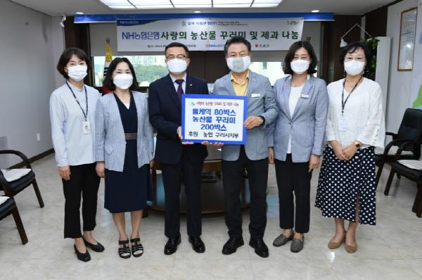 농협 구리시지부에서는 17일 창립 60주년을 기념하여 우리 농산물 소비 촉진과 사회공헌 활동 전개를 목적으로 사회복지시설에 농산물 꾸러미 200상자와 롤케이크 80상자를 전달하였다.