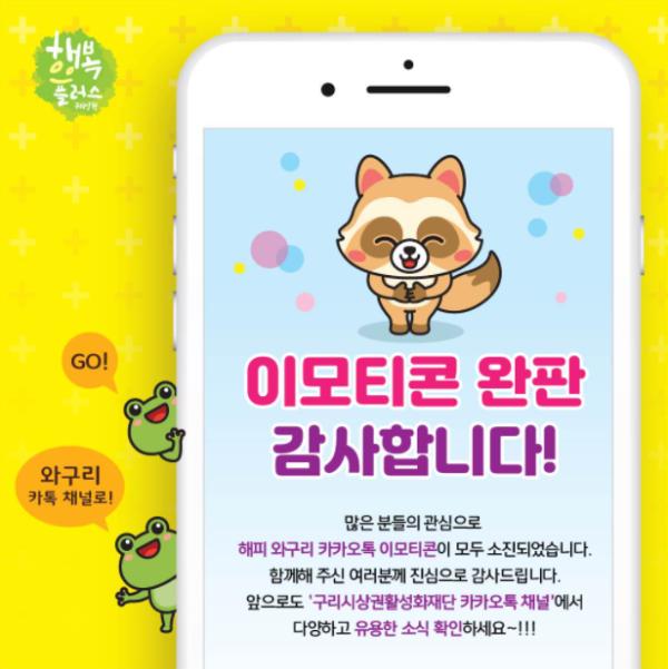 이번 이모티콘은 ‘해피 와구리’라는 주제로 ‘구리, 시민 행복특별시’라는 시정 구호에서‘행복’이라는 핵심가치를 와구리에 접목시켰고, 특히 추석을 앞두고 안부 인사를 전할수 있는 ‘해피추석!’이모티콘을 추가해 활용성을 높혔다.