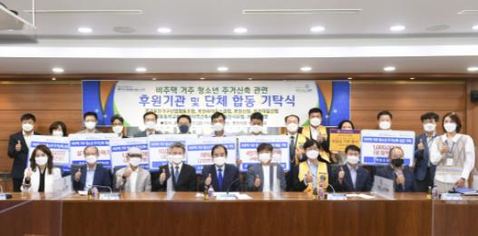 [한국뉴스타임=명기자] 포천시는 지난 17일 포천시청 시정회의실에서 비주택 거주 청소년 주거신축 관련 후원기관 및 단체의 합동 기탁식을 개최했다.
