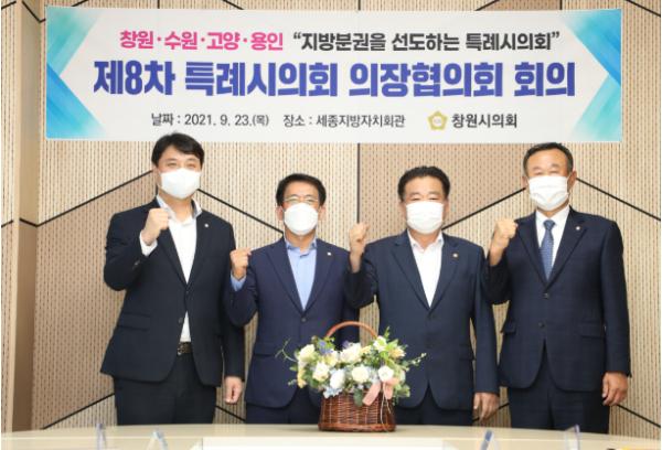 [한국뉴스타임=명기자] 내년 1월 13일 특례시 출범을 앞두고 4개 특례시의회도 준비에 박차를 가하고 있다. 용인시의회 김기준 의장은 23일 세종시 지방자치회관에서 열린 제8차 전국 특례시의회 의장협의회 회의에 참석해 다양한 의견을 교환했다.