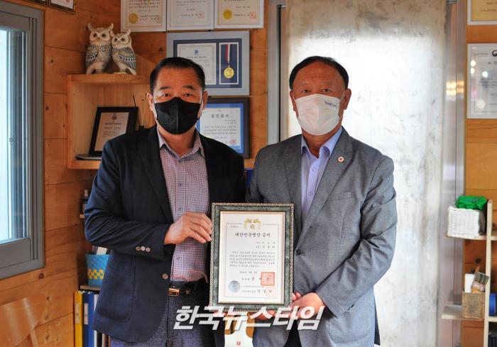 [한국뉴스타임=이명수기자] 23일 김성기 가평군수는 '대한민국 명장'에 선정된 가평군 설악면 성원석재 김동현 장인을 방문하였다.