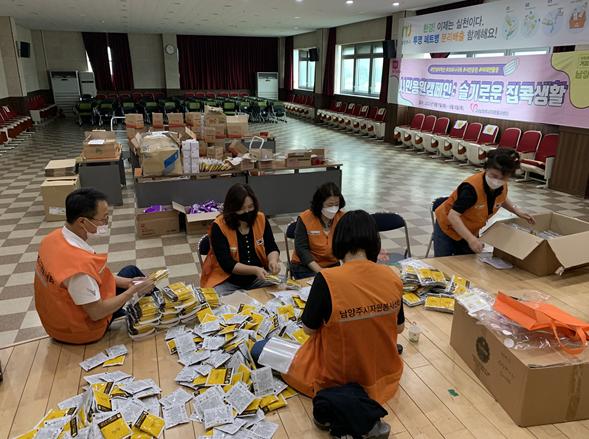 [한국뉴스타임=명기자] ㈔남양주시자원봉사센터는 코로나19 극복 안녕리액션‘시민 응원 프로젝트’의 일환으로 지난 9일 시민들의 코로나 블루 극복을 위한 ‘슬기로운 집콕생활’ 응원키트를 시민 200여명에게 전달했다.