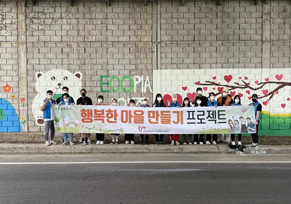 행복한 마을 만들기 프로젝트는 지역 내 쓰레기 상습 무단투기 지역에 화단을 조성하고 벽화를 그리는 활동을 통해 환경개선을 도모하는 프로젝트이다.