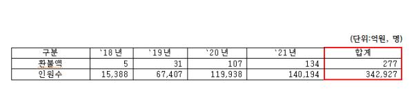 이에 대해 성일종 의원은 “2018년부터 「장병 자기개발 지원비용」의 지급으로 인해 환불액과 인원이 급증하는 추세를 보여 전역자들이 찾아가지 않는 돈은 늘어날 것”이라며 “전역하면 자동으로 본인의 계좌로 환불되거나 서민금융진흥원의 「휴면예금 찾기」와 연계하는 등 다양한 방안들을 모색해 전역자들에게 숨어있는 돈을 되돌려 줘야 할 것”이라고 말했다.