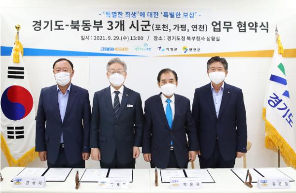 [한국뉴스타임=명기자] 가평군은 경기도와 포천시, 연천군과 29일 상생협력을 위한 업무협약을 경기북부청사에서 체결했다.