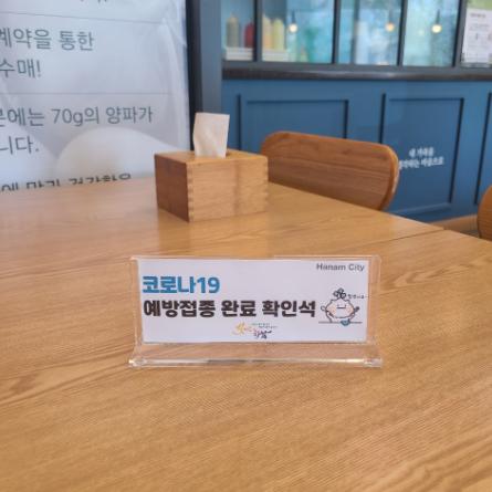 [한국뉴스타임=명기자] 하남시는 지역 내 음식점·카페 3,423개소(시설 면적 10㎡ 이상)에 코로나19 백신 접종완료 테이블 안내판을 지원한다고 30일 밝혔다.