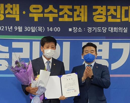 [한국뉴스타임=명기자] 경기도의회 안전행정위원회 김판수 위원장(더불어민주당, 군포4)이 ‘2021년 더불어민주당 경기도당 우수정책·우수조례 경진대회’에서 우수 조례 부문 도당위원장상을 수상하였다.