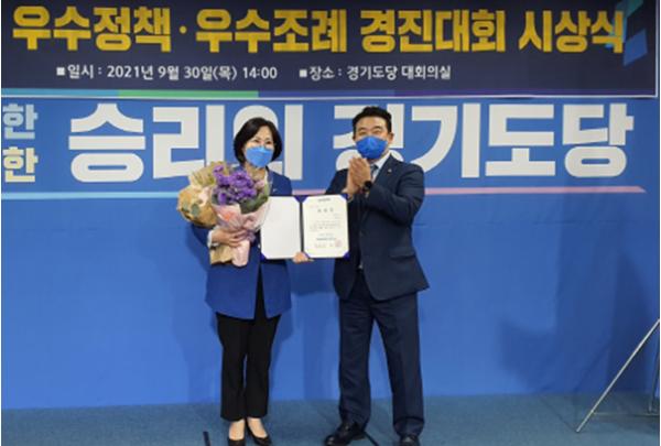 더불어민주당 경기도당은 지난 1년간 경기도당 소속 선출직 공직자가 실시한 정책 또는 발의한 조례를 대상으로 공모 절차를 거쳐, 9월 30일 경기도당 대회의실에서 수상자를 대상으로 시상식을 열었다.