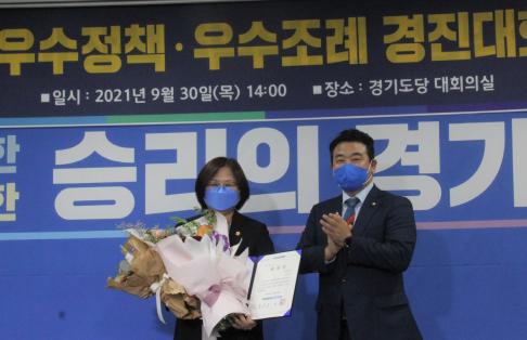 이번 ‘더불어민주당 경기도당 우수조례’는 경기도당 소속 선출직 공직자 대상으로 정책자문위원 중 5명을 심사위원으로 위촉하여 1차 심사에서 7개 지표(혁신성, 민주성, 합법성, 형평성, 효과성, 효율성, 참여도)를 평가하고, 2차 심사에서 3개 지표(1차 심사 반영, 확장성, 강령 부합성)를 평가하여 선정한 것으로, 시상식은 사회적 거리두기 지침을 철저하게 준수하여 최소 인원만 참석하여 상장을 수여하는 형식으로 진행됐다.