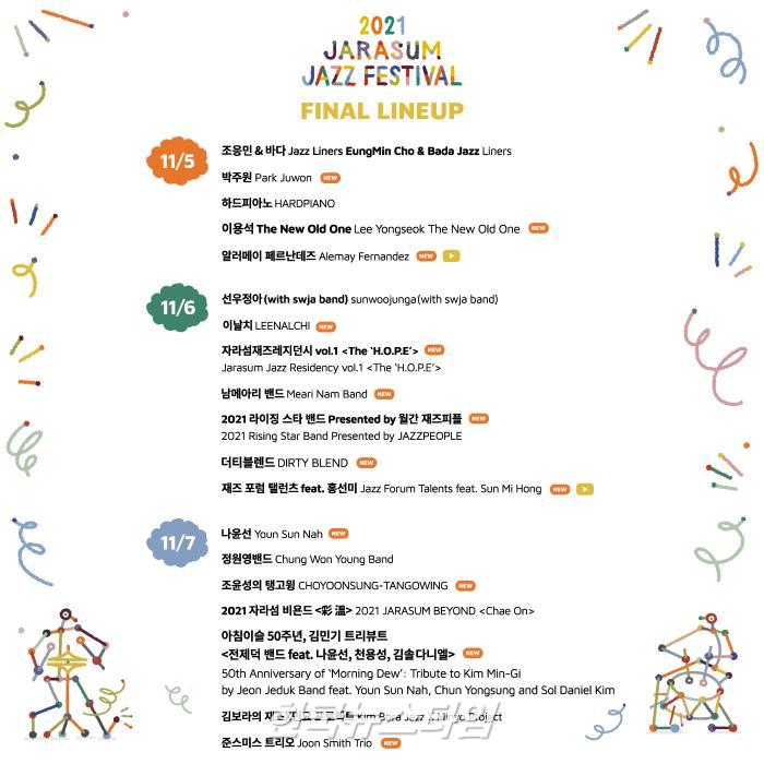 1차 라인업으로 공개되어 많은 호응을 얻었던 선우정아(with swja band), 조응민&바다 JAZZ LINERS, 정원영 밴드, 하드피아노, 김보라 재즈x민요 프로젝트를 포함하여 장르와 전형성의 경계를 허물고 새로운 음악 세계를 펼치고 있는 아티스트들로 ‘믿고 듣는 자라섬재즈’다운 라인업을 완성했다.