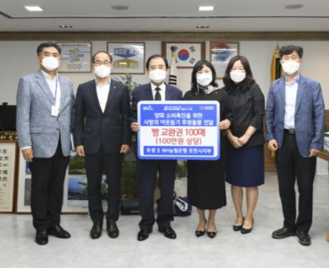 [한국뉴스타임=명기자] 포천시는 지난 5일 NH농협은행 포천시지부에서 취약계층 지원을 위해 빵 교환권 100매(100만원 상당)를 경기사회복지공동모금회에 기탁하였다고 밝혔다.