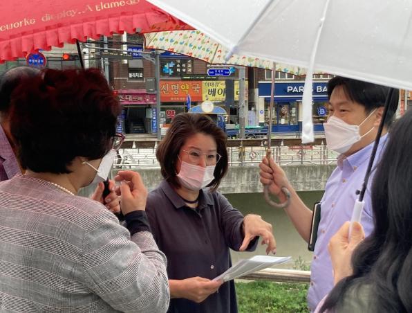이날 현장에서는 ▲안전한 통학로 확보 및 주민들의 편의를 위한 백석천 진입로 개설 위치 논의 ▲아파트 입구, 능서들교 부근에서 백석천 호안 연결을 논의했다.