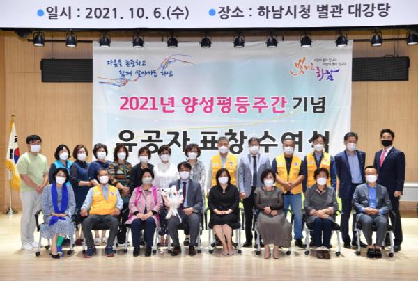 [한국뉴스타임=명기자] 하남시는 2021년 양성평등주간을 맞아 6일 하남시청 별관 대강당에서 양성평등발전 유공자 표창을 수여했다.