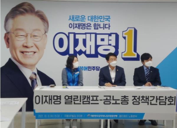 시종 화기 애애한 분위기에서 진행된 간담회에서 조정식 총괄본부장은 “ 소년공 출신인 이재명후보는 늘 사회적 약자와 노동자 편에서 활동을 해 오신 분으로, 오늘 제안된 정책들에 대해서 향후 대선과정과 국회에서의 논의를 통해 공노총의 입장과 요구가 최대한 반영되도록 노력하겠다.”라고 답변했다.