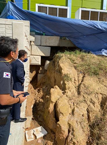 김윤덕 의원은“ 지난 30일 익산 국가 식품클러스터 현장을 방문해 피해 현황을 살펴봤다”면서 “지반 침하가 심해 고압·고열·가스 시설 장비 안전사고 위험과 누수·누전, 토사 유출로 인한 붕괴 위험 등 안전사고 발생 요소가 굉장히 컸다"라고 지적했다.