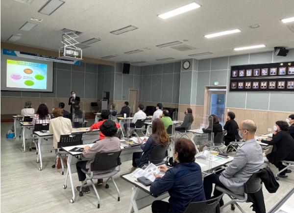 이번 교육은 한림대학교 고윤순 교수를 모시고 「해결중심 상담법」이라는 주제로 2시간동안 진행되었다. 이번 교육은 최근 코로나19 지역내 재유행을 감안하여 철저한 방역수칙을 준수하며 20여명의 참가자만 선발하여 진행하였다.