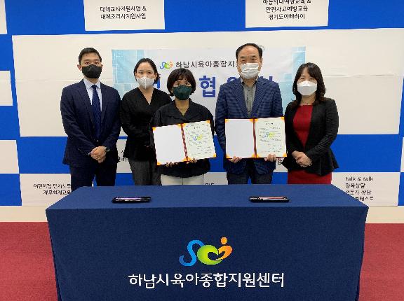 [한국뉴스타임=명기자] 하남시육아종합지원센터와 하남시사회복지협의회는 7일 업무협약을 맺고 양질의 보육환경 조성 및 지역복지 활성화에 협력하기로 했다고 밝혔다.