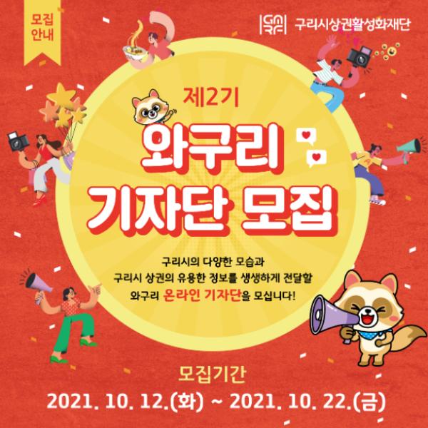 한편, ‘와구리 블로그 기자단’이라는 명칭은 구상재가 올해 3월 시민 투표를 통해 선정한 상권홍보 캐릭터의 이름인 ‘와(WOW)구리’에서 따 온 것으로, 1기 기자단 활동을 통해 100여개의 글을 포스팅하며 구리시 구도심 상권의 많은 소상공인 점포들을 홍보한 바 있다.
