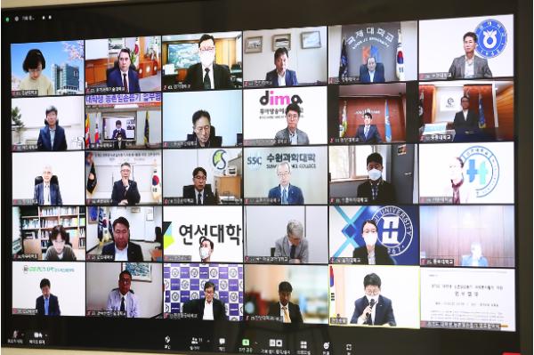 안동광 경기도 농정해양국장과 도내 29개 대학교 총장, 정용왕 농협중앙회 경기지역본부장은 8일 경기도청에서 ‘경기도 대학생 농촌일손돕기 사회봉사활동 지원 업무협약’을 비대면 화상으로 체결했다.