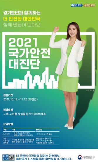 [한국뉴스타임=명기자] 경기도가 15일부터 11월 12일까지 건축, 생활·여가, 환경·에너지, 교통, 보건복지 등 7개 분야에 대해 ‘2021년 국가안전대진단’을 실시한다.