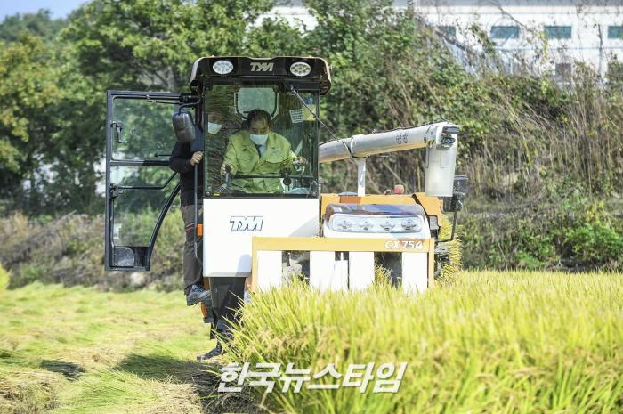 박윤국 포천시장은 직접 콤바인(수확기)에 탑승해 벼베기를 시연하고 농민들의 목소리를 경청하는 등 벼 수확의 기쁨을 함께 나눴다.