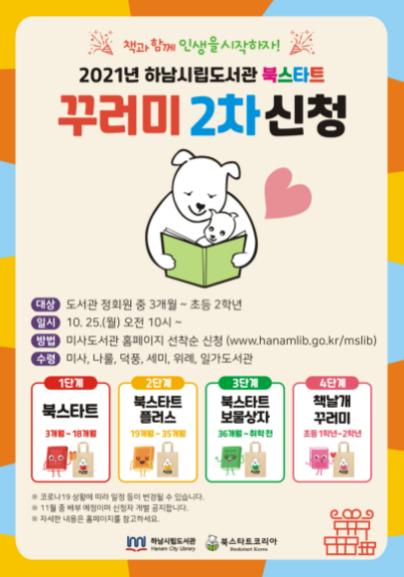 [한국뉴스타임=명기자] 하남시는 ‘책과 함께 인생을 시작하자’는 취지로 '북스타트 꾸러미' 2차 배부와 후속 프로그램인 '그림책과 함께하는 책놀이'를 운영한다고 18일 밝혔다.