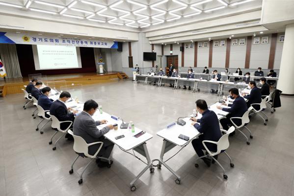 [한국뉴스타임=명기자] 경기도의회는 18일 오전 의회 대회의실에서 ‘2021년 경기도의회 사무처 조직진단 및 조직체계 개선 연구용역 최종보고회’를 개최하고, 지방자치법 개정에 따른 경기도의회 조직개선 및 운영 방안에 대해 집중적으로 논의했다.