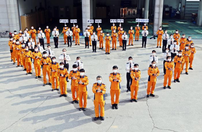 이날 서장 및 직원들은 청사 앞에서 캠페인에 참여해 최일선에서 대응하는 의료진과 사회적 거리두기 등 감염예방을 위해 함께 실천하고 있는 시민들의 노고와 헌신에 존경과 감사메시지를 전했다.
