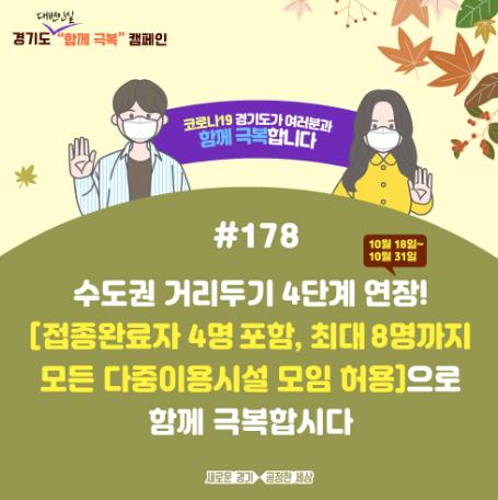 19일 0시 기준, 경기도 확진자 수는 전일 대비 401명 증가한 총 10만1,333명이다. 18일 오후 8시 기준, 일반과 중증환자 병상을 합한 도내 의료기관 확보병상은 총 2,282개다. 현재 병상 가동률은 66%로 1,499병상을 사용하고 있다. 도에서 운영하는 총 11개의 일반 생활치료센터에는 18일 오후 6시 기준 1,509명이 입소해 있다.
