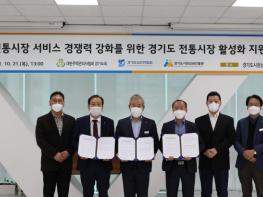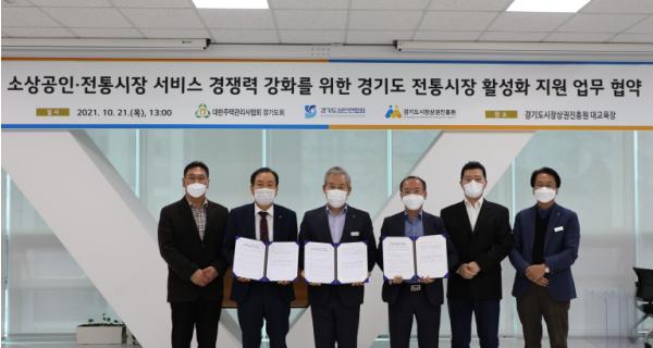 [한국뉴스타임=명기자] 경기도시장상권진흥원은 코로나19로 위기를 겪고 있는 소상공인·전통시장의 서비스 경쟁력을 강화하고 경기도 전통시장의 이용 활성화를 위하여 대한주택관리사협회(이하 대주관) 경기도회 및 경기도상인연합회(이하 경상연)와 ‘경기도 전통시장 활성화 지원을 위한 업무 협약’을 21일 오후 경상원 대교육장에서 체결했다고 밝혔다.