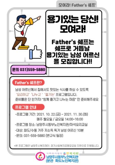 남양주시동부노인복지관 김종규 관장은 “‘Father's 쉐프!’프로그램에서 요리교실 뿐만 아니라 맛집탐방, 요리콘테스트 등 다양한 프로그램을 진행할 예정”이라며 “참여 어르신들의 자립을 지원하고 영양상태를 증진시키는데 도움이 됐길 바라며, 이후에도 프로그램이 지속적으로 진행될 수 있도록 노력하겠다.”라고 말했다.