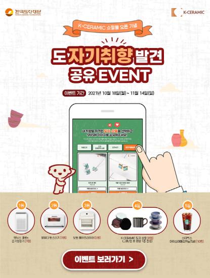 재단은 참여자 중 20명을 선정해 ▲1등 워닉스 제로S 공기청정기(1명) ▲2등 발뮤다 토스터기(2명) ▲3등 보토 에어프라이어(2명) ▲4등 K-Ceramic 도자상품(6명) 등 총 100만원 상당의 경품을 제공할 예정이다.