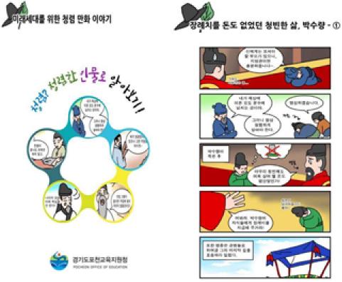 특히 이번 교육자료는 ▲오성과 한음이 들려주는 청렴 이야기로 정직, 공정을 주제로 엮어 동화로 구현한 유치원생용 동화책 ▲위인들의 청빈하고 솔선수범의 삶을 그려낸 초등학생용 만화책 ▲사실적 이론에 입각한 청렴과 경제성장의 상관관계를 나타낸 ‘우리는 왜 국가청렴도를 높여야하는가?’의 중·고등학생용 PPT로 학생별 수준에 맞는 수요자 맞춤형 자료로서 제작됐다.