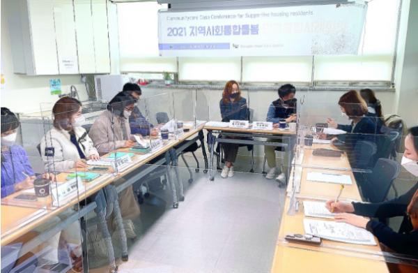 이날 회의에서는 화도수동행정복지센터 찾아가는보건복지팀의 공무원을 비롯해 동부희망케어센터 협력 기관인 남양주 해피트리요양원(원장 장공자)이 함께 참석해 지원이 필요한 대상자들에 대한 다학제 간 전문 사정을 통해 입주자에게 필요한 서비스 지원 계획 수립 등을 논의했다.