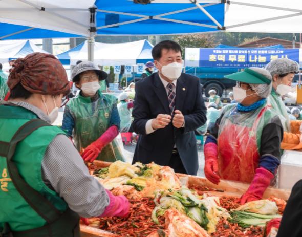이철영 의장은 소외된 어려운 이웃들이 겨우내 먹을 수 있는 김장김치를 나누기 위해 구슬땀을 흘리는 새마을 봉사자들을 격려했다.