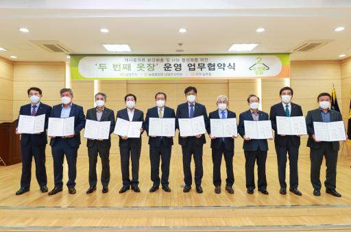 이번 협약은 의류 재사용 문화를 정착시켜 자원의 낭비를 줄임으로써 자원 순환 사회를 구현하기 위해 추진됐으며, 이날 협약식에는 조광한 남양주시장을 비롯해 오정수 농협중앙회 남양주시지부장과 지역 농·축협(미금농협, 별내농협, 수동농협, 와부농협, 진건농협, 진접농협, 화도농협, 축산농협) 조합장들이 참석했다.
