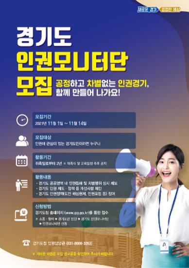 [한국뉴스타임=명기자] 경기도가 인권친화적 경기행정을 구현하기 위해 ‘제2기 경기도민 인권모니터단’을 기존 30명에서 1천 명으로 대폭 확대하기로 하고, 도민 666명을 공개 모집한다.