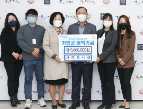 또한, 김성기 가평군수는 “코로나19로 모두 어려운 시기에 가평군 교육발전을 위해 힘써준 남궁명숙 대표에게 감사의 뜻을 전하다.”며 “가족봉사단의 봉사활동을 통한 기부금이 가평군의 미래를 이끌 우수한 인재들에게 폭넓은 장학사업 혜택을 누릴 수 있도록 하는 큰 힘이 될 것”이라고 말했다.
