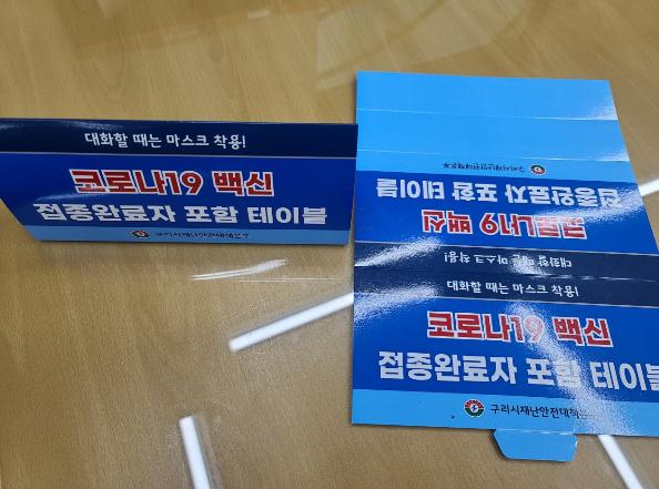 [한국뉴스타임=명기자] 구리시는 본격적인 ‘위드 코로나’ 시기를 대비하여 관내 2,900여 개소의 식당·카페 등 다중이용시설에 ‘코로나19 백신접종 완료자 포함’ 테이블 안내판 2만여 매를 제작·배부했다.