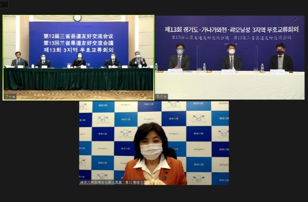 상호 자매결연 관계인 3지역 간 협력 네트워크 강화를 위해 1996년 창설된 ‘경기도․가나가와현․랴오닝성 3지역 우호교류회의’는 한․중․일 지방정부가 주도하는 가장 오랜 역사를 보유한 지역 협력체다. 당초 제13회 회의는 중국 랴오닝성에서 개최될 예정이었으나, 코로나19에 따른 국외 이동 제한으로 3지역 협의를 거쳐 화상회의로 개최됐다.