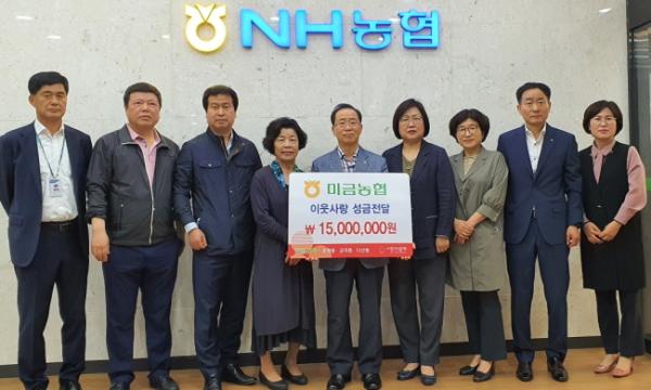 최경순 조합장은 “미금농협은 모든 조합원의 관심으로 성장해왔기에 항상 감사한 마음을 가지고 있었으며, 코로나19로 힘들어하고 있는 조합원들에 보답하고자 후원금을 전달하게 됐다”며, “전달 된 후원금이 어려움을 겪고 있는 지역주민들에게 희망이 되길 바란다”고 전했다.
